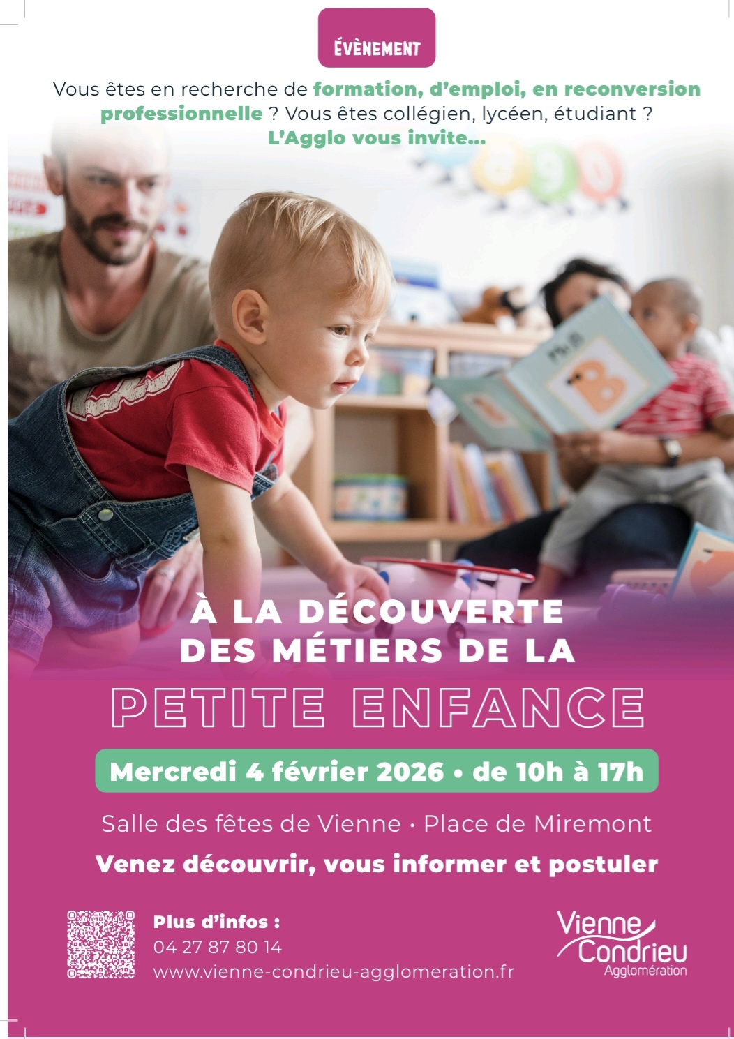 La troisième édition du salon À la découverte des métiers de la petite enfance se tiendra mercredi 4 février 2026, de 10h à 17h, à la salle des fêtes de Vienne. L'objectif : répondre au manque de professionnel(le)s sur le territoire.